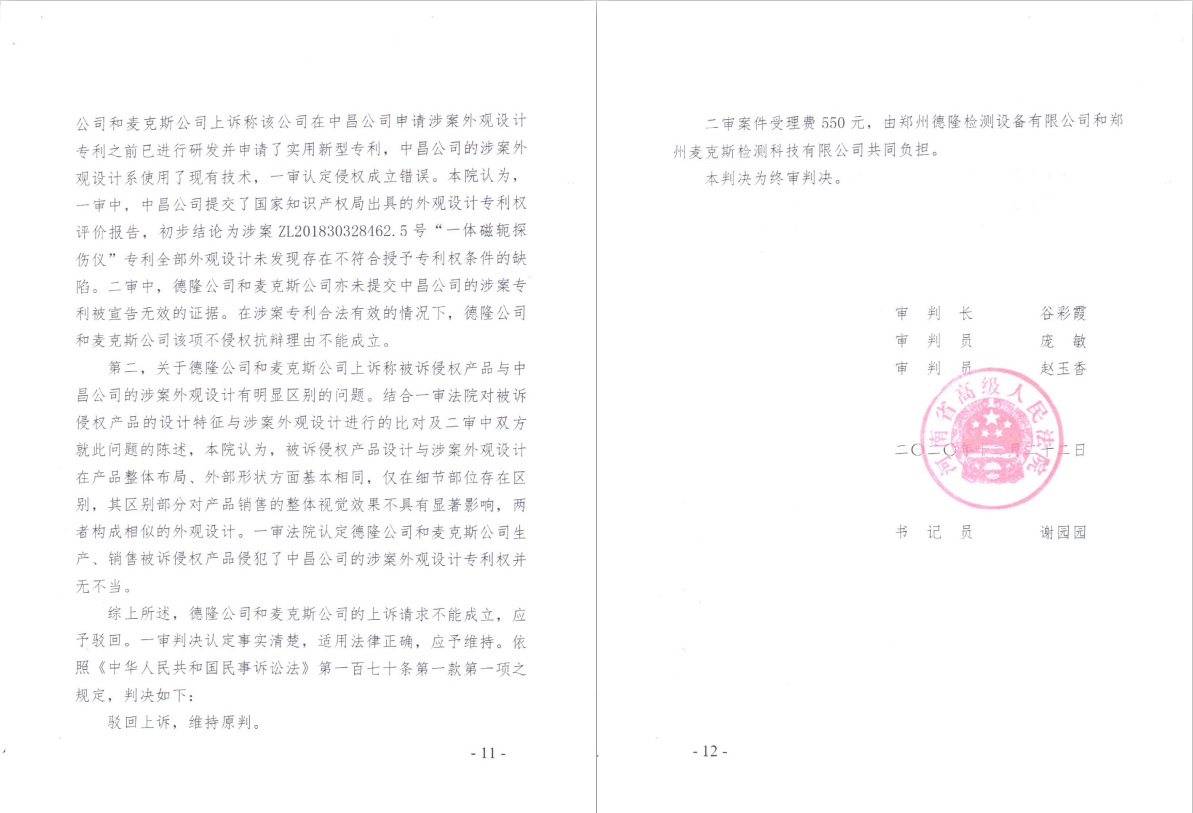 喜讯,中昌公司知识产权维权取得又一胜利!